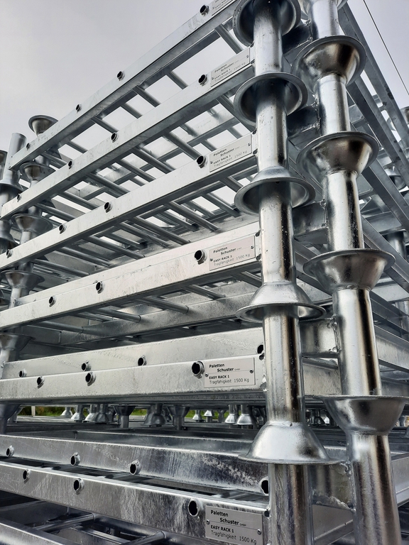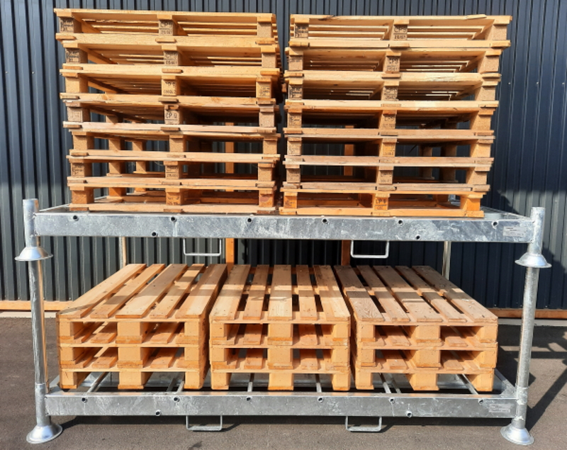 Ergänzt wird das Sortiment durch Holz- und Kunststoffpaletten, Palettenboxen, Rollbehälter, Stapelgestelle, Big Bag Gestelle sowie individuelle Sonderlösungen.