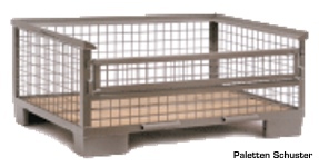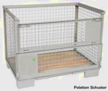 Industriegitterbox, halbhoch mit halber Klappe und Holzboden